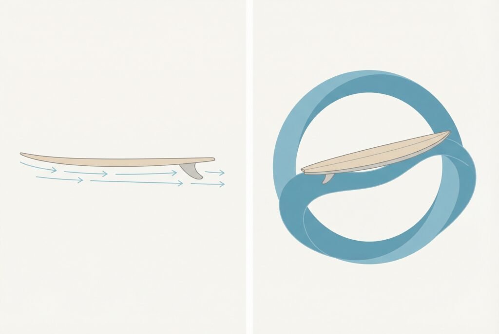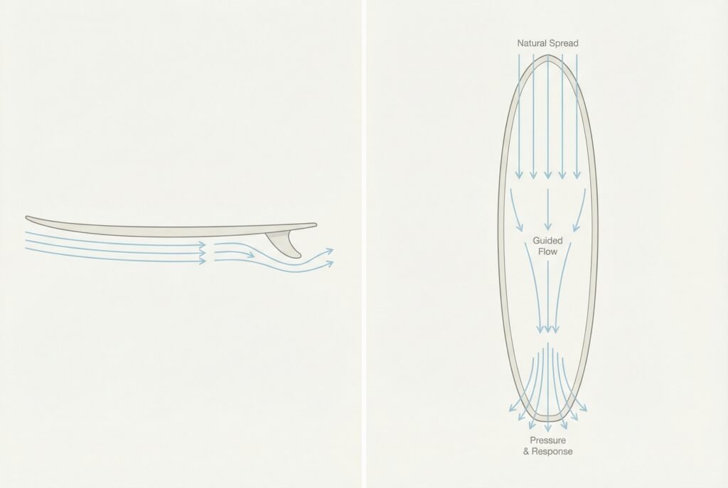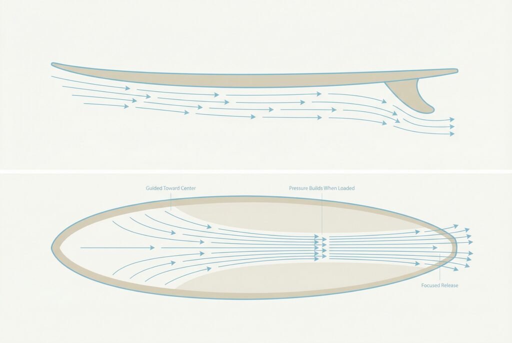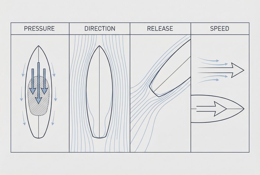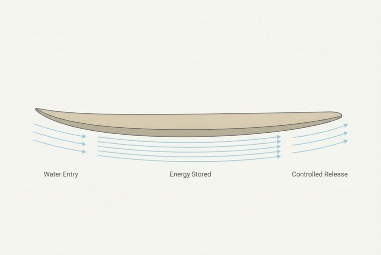 It’s about how energy is accepted, stored, and released as water moves beneath the board.