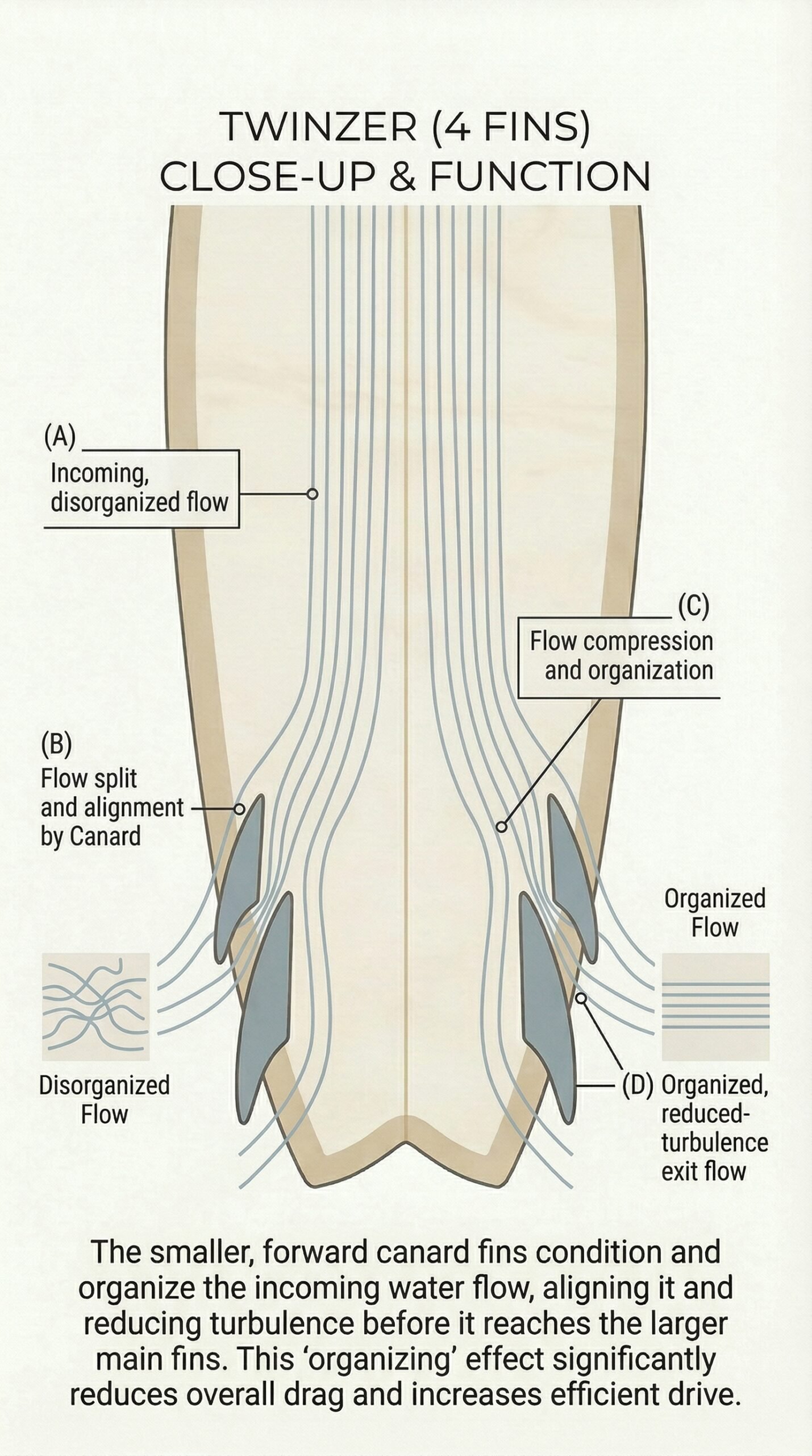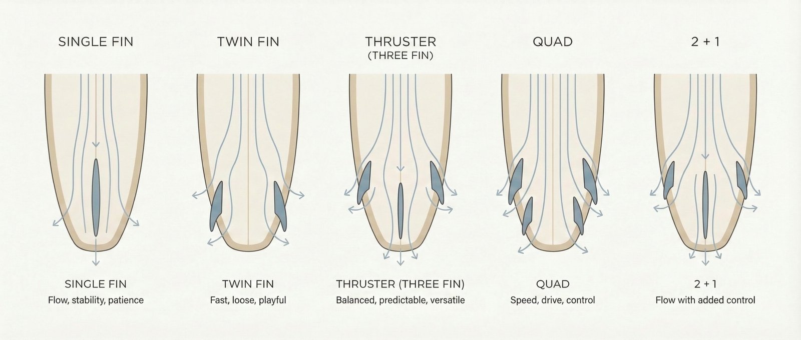 Surfboard fins are the connection point between the surfer, the board, and the moving ocean. They don’t generate speed on their own — they allow surfers to use the energy of the wave by converting water flow into lift, resistance, and control.